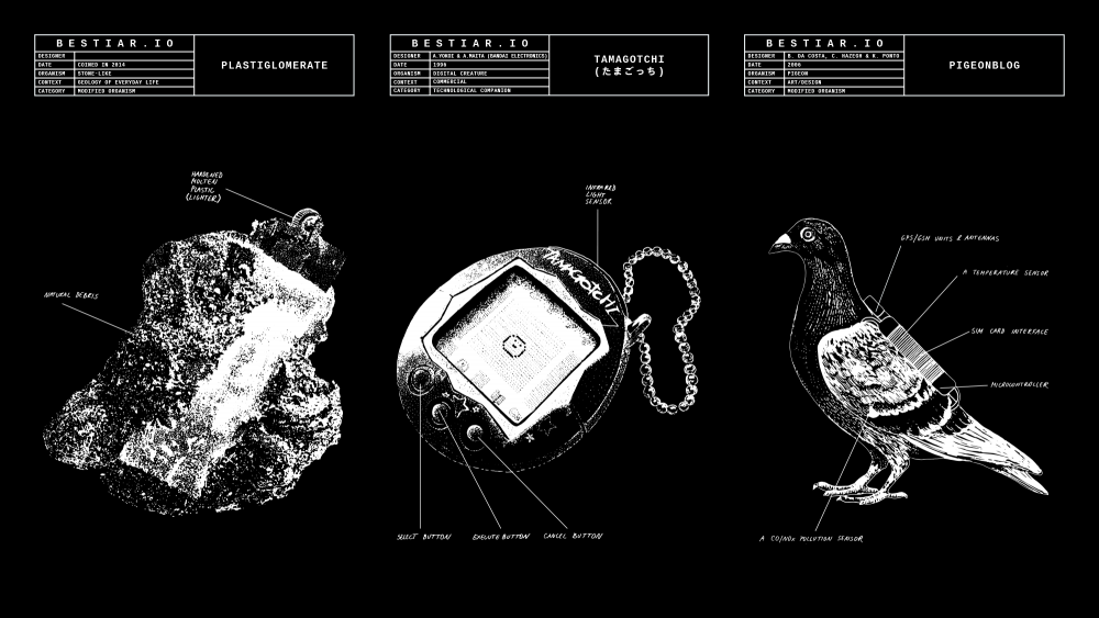 Depuis une dizaine d’années, Nicolas Nova rassemble un bestiaire de créatures hybrides, au croisement du monde animal et du règne technologique. Muni d’un bagage de biologiste et d’une expérience d’ethnologue, il observe nos rituels numériques comme d’autres scrutaient les cérémonies tribales aux îles Trobriand. Le chercheur se livre à une conférence foraine où les monstres de l’Anthropocène poussent entre nature et culture, mêlant l’amanite, le tamagotchi, la puce d’ordinateur et la chauve-souris
