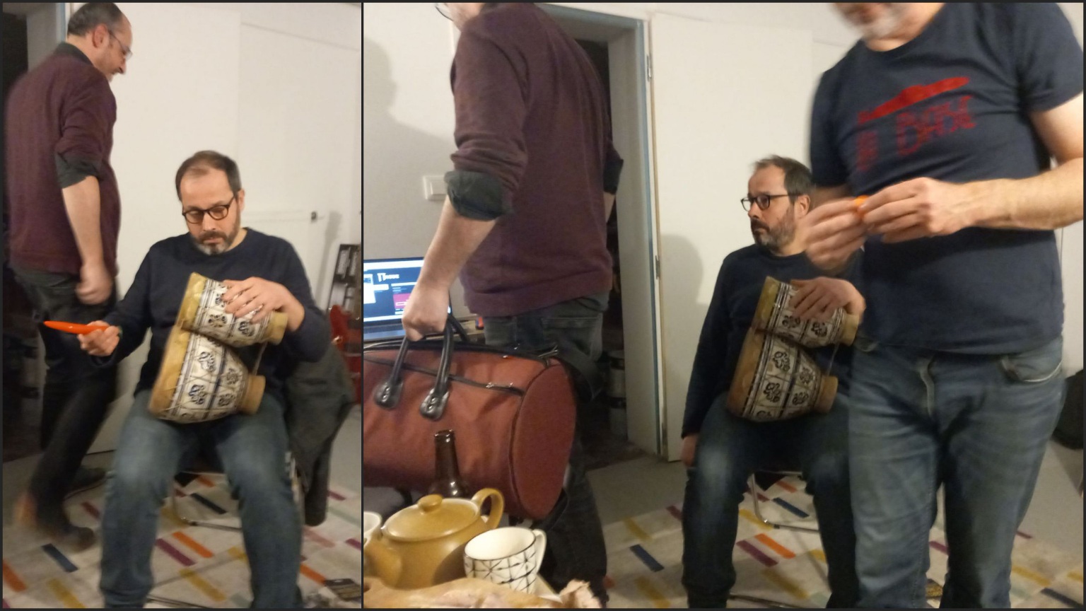 Concert incroyable de Sob/Mich en avril 2022 sur la terrase-toit de Philzim et en compagnie de toute la Mifa ; un doigt sur la couture :